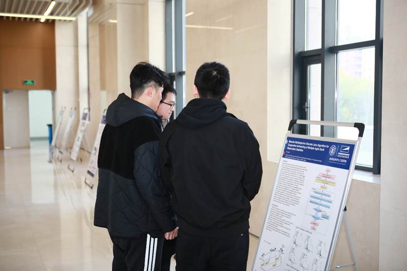 在中场休息期间,学院优秀硕博研究生带来了学术海报展示。展示内容覆盖智能控制、人工智能、机器人、综合能源系统等多个研究方向。
